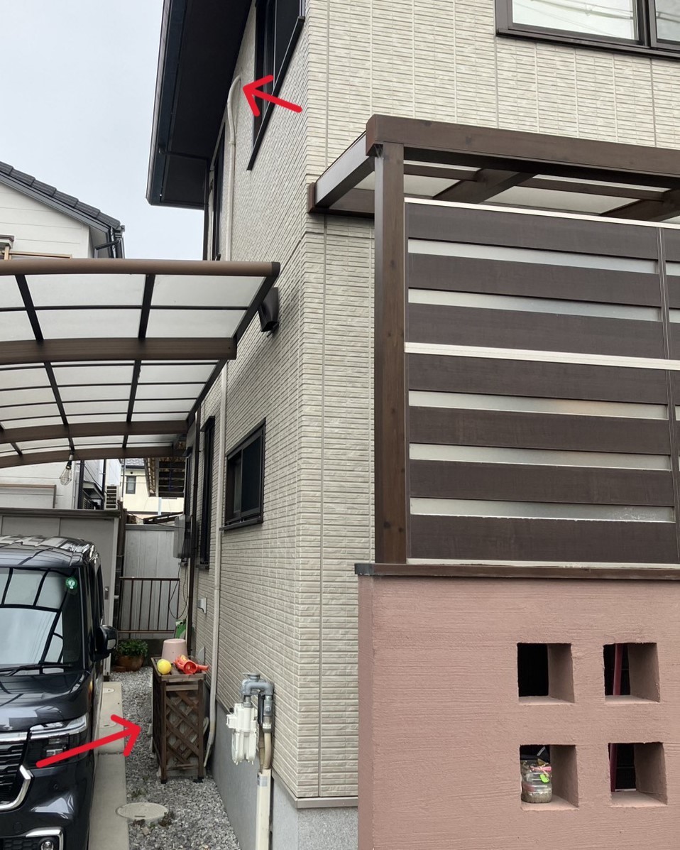 - 当時はカーポート無かった為、取り付け業者は梯子で高所作業をしました。