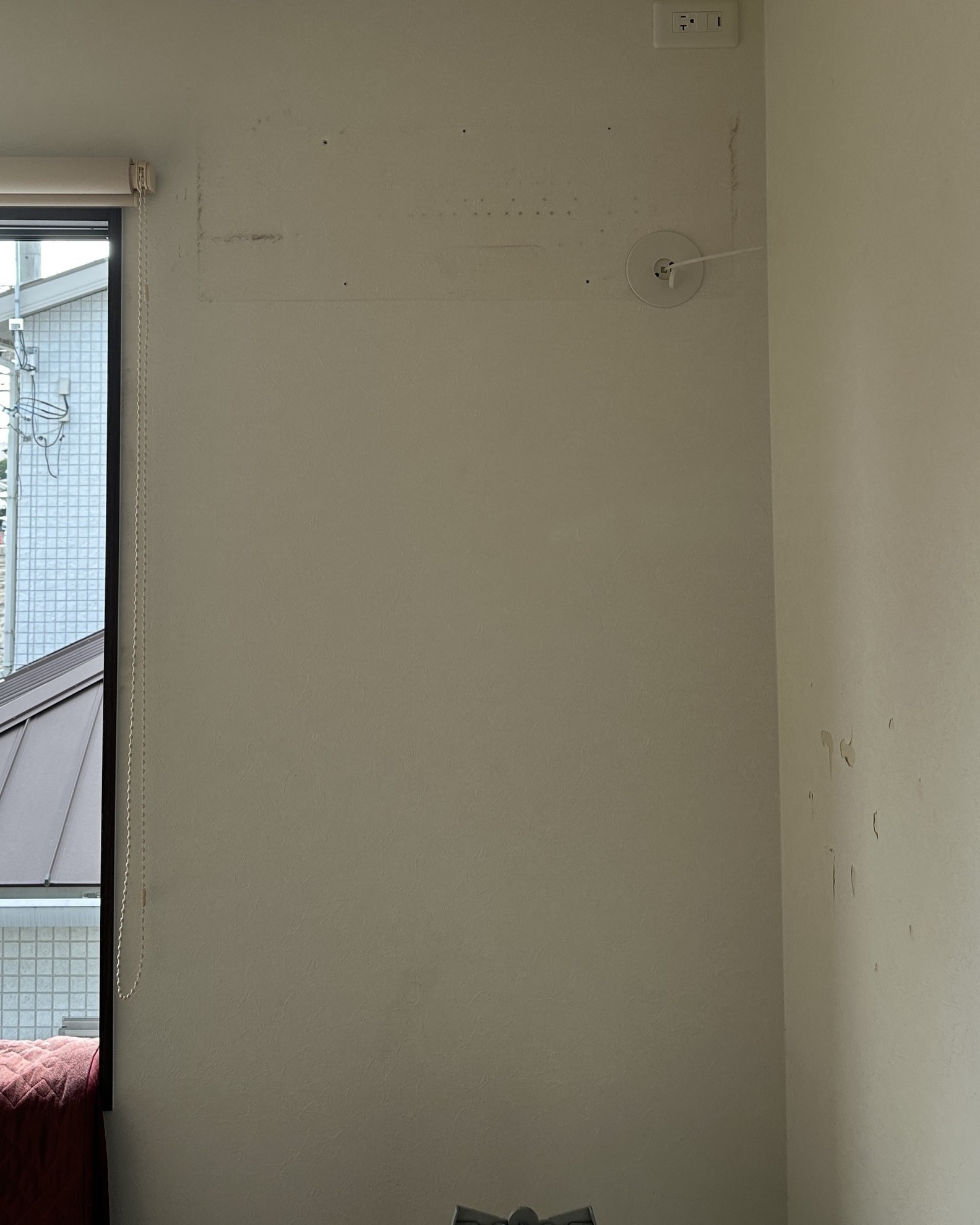 - エアコン撤去後は既存の穴はメクラキャップで塞いで、そして外に面するキャップはコーキング処理施しています。