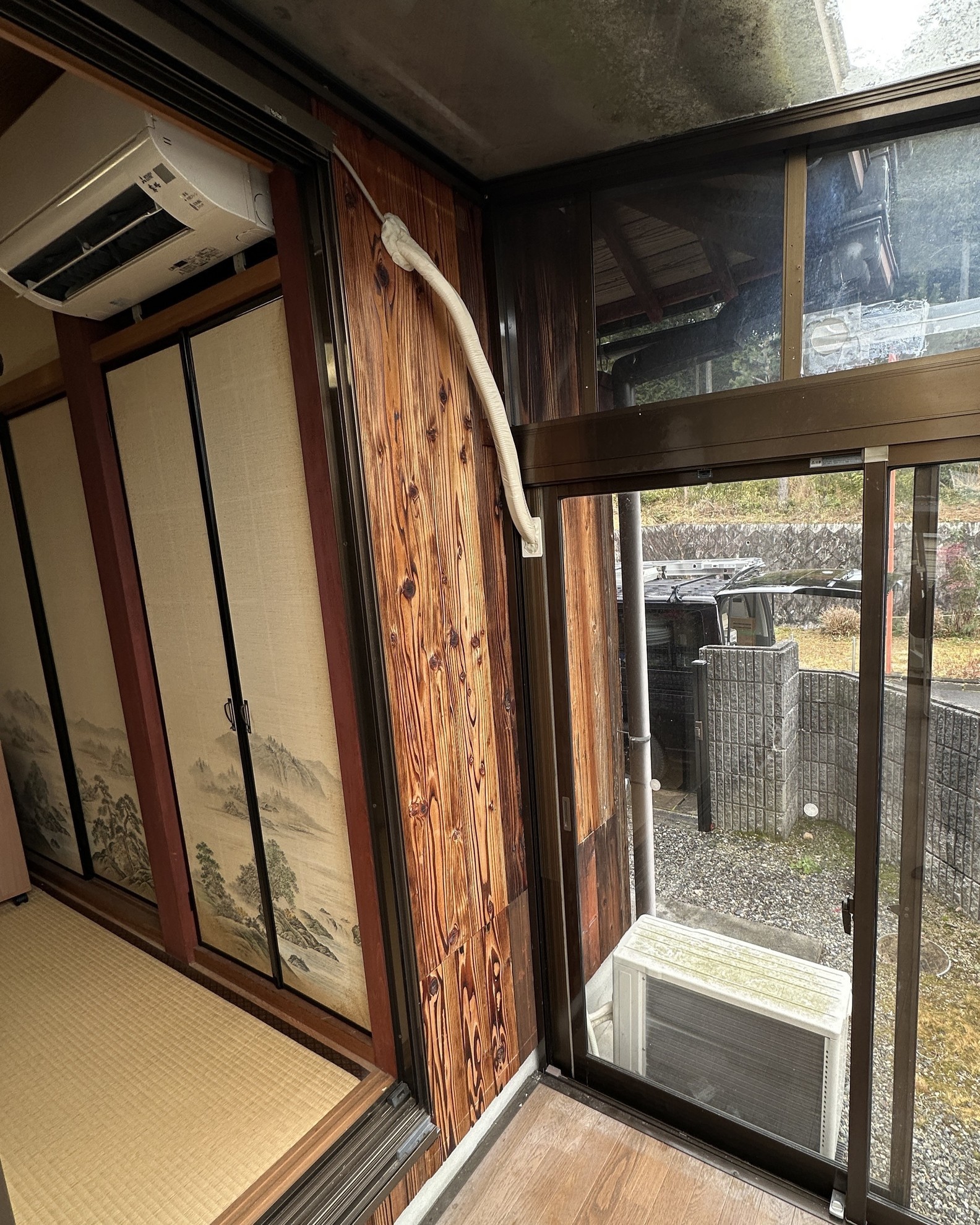 - 押入れの外に出た冷媒配管はサンルームの中で有る為、
