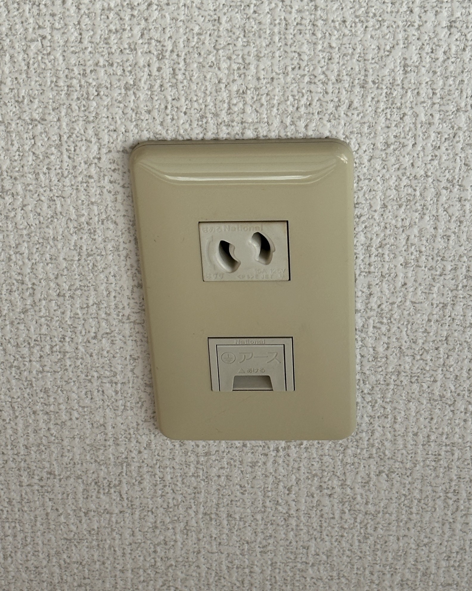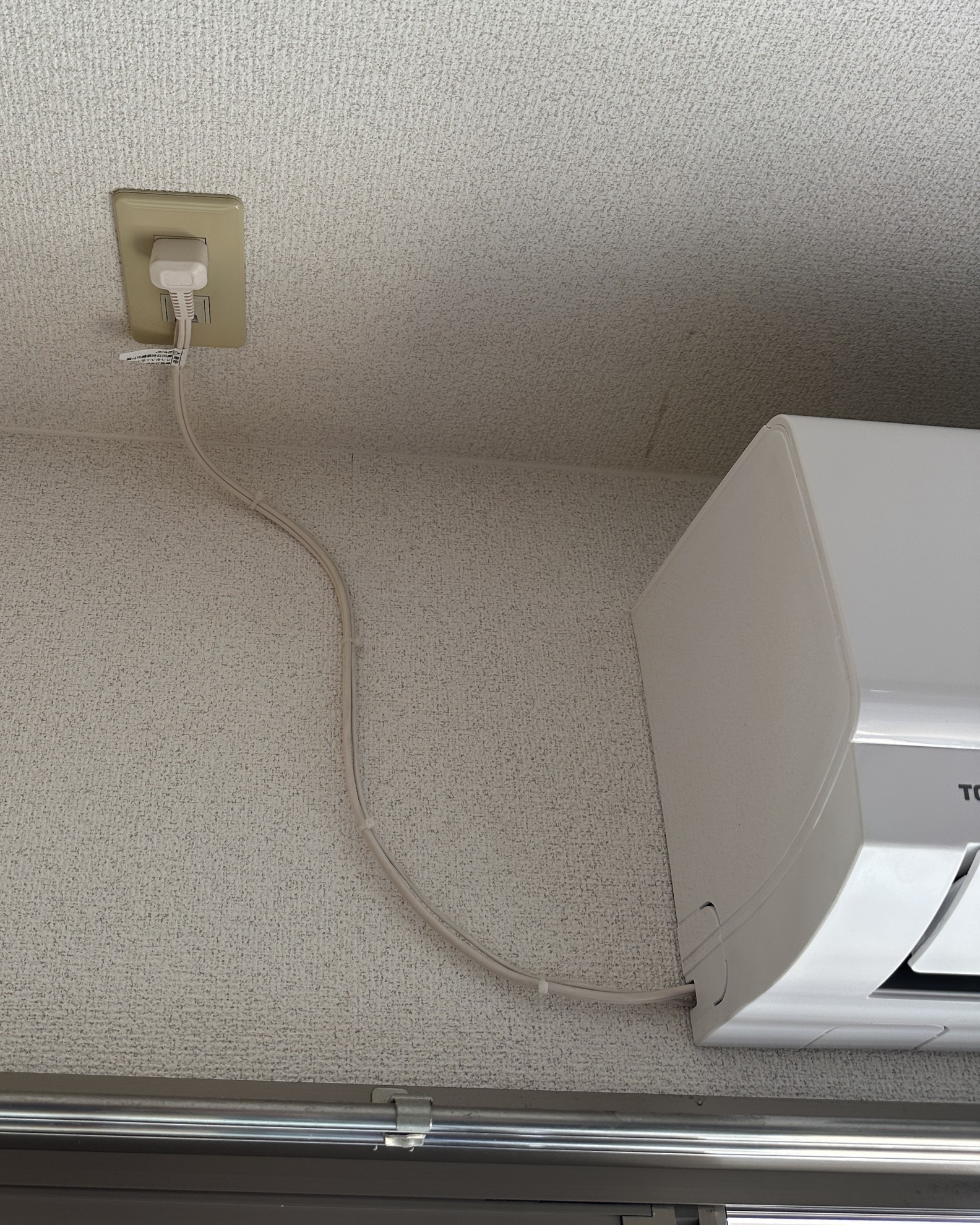 - 天井に有るエアコンの専用コンセントは最近で新築で見られない落下防止付きです。