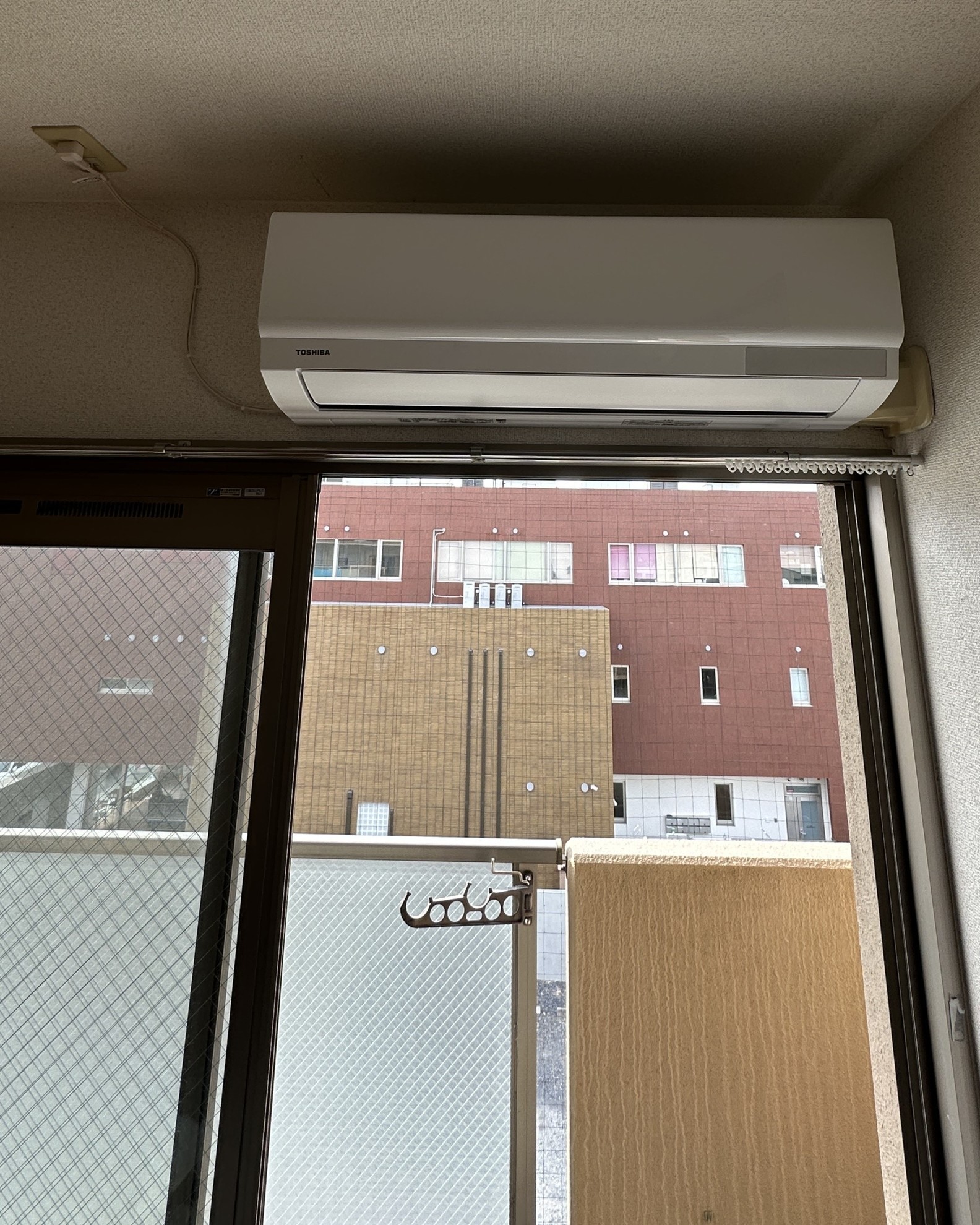 - 草津市の賃貸マンションのクリーニング前のエアコン取り付けです。