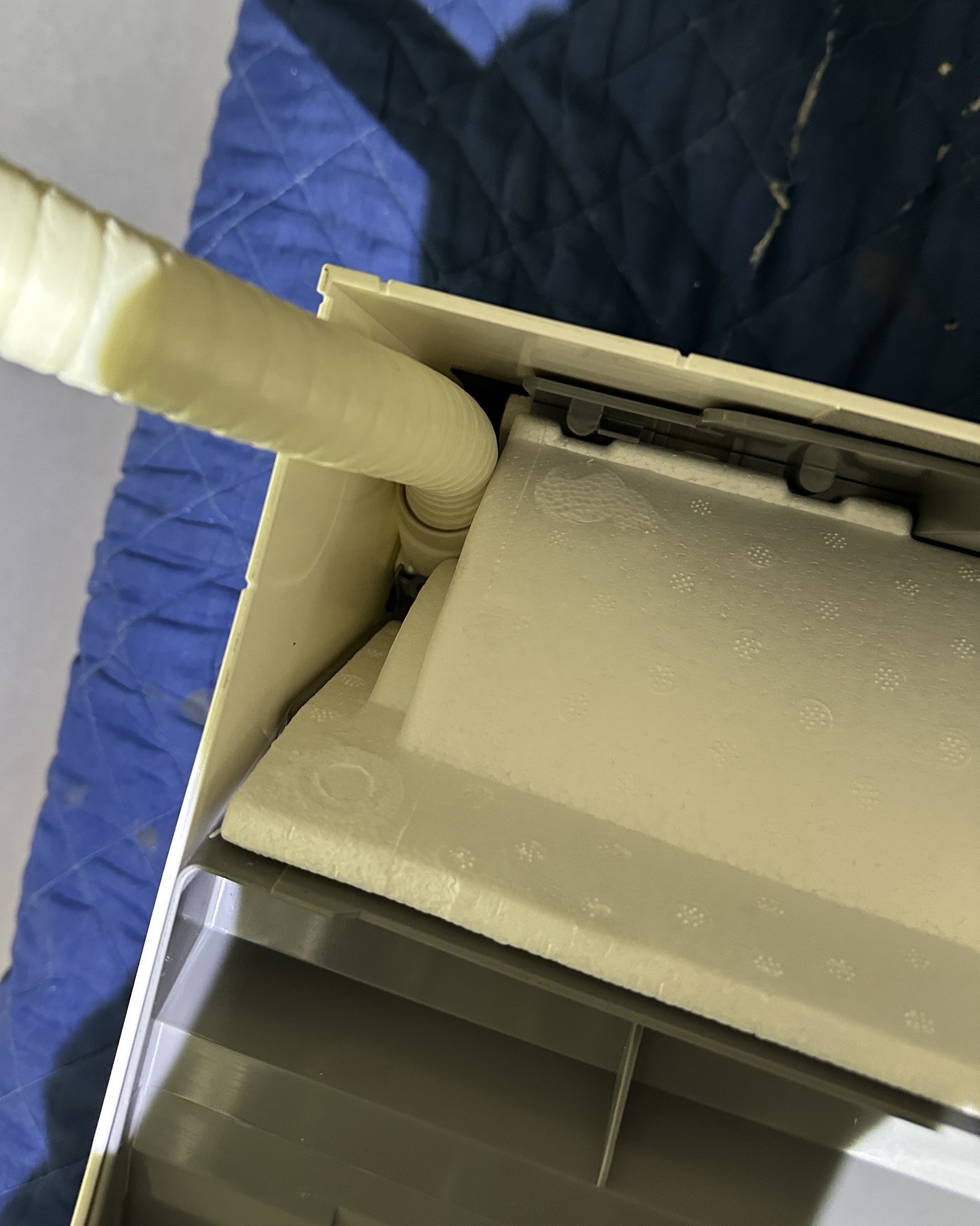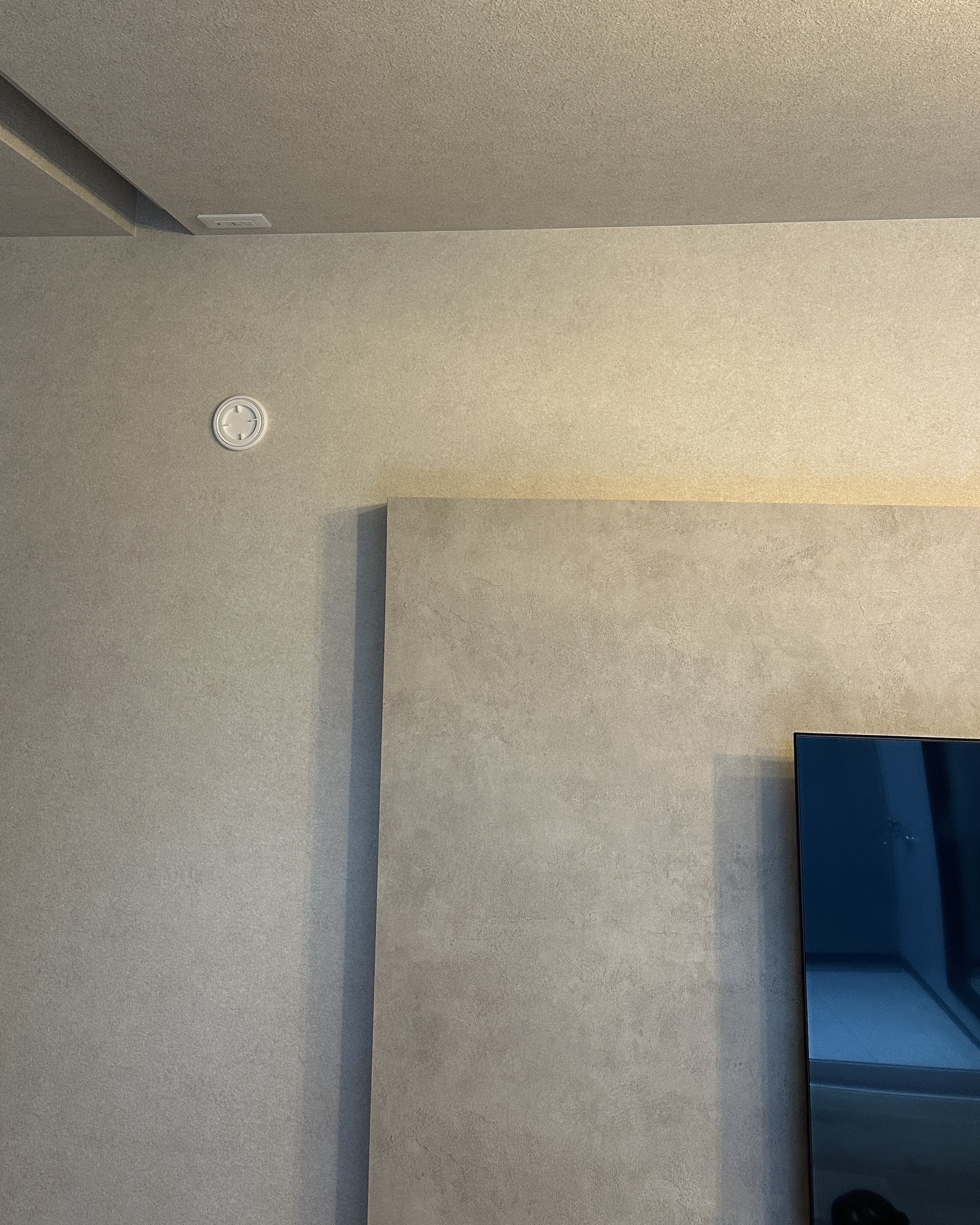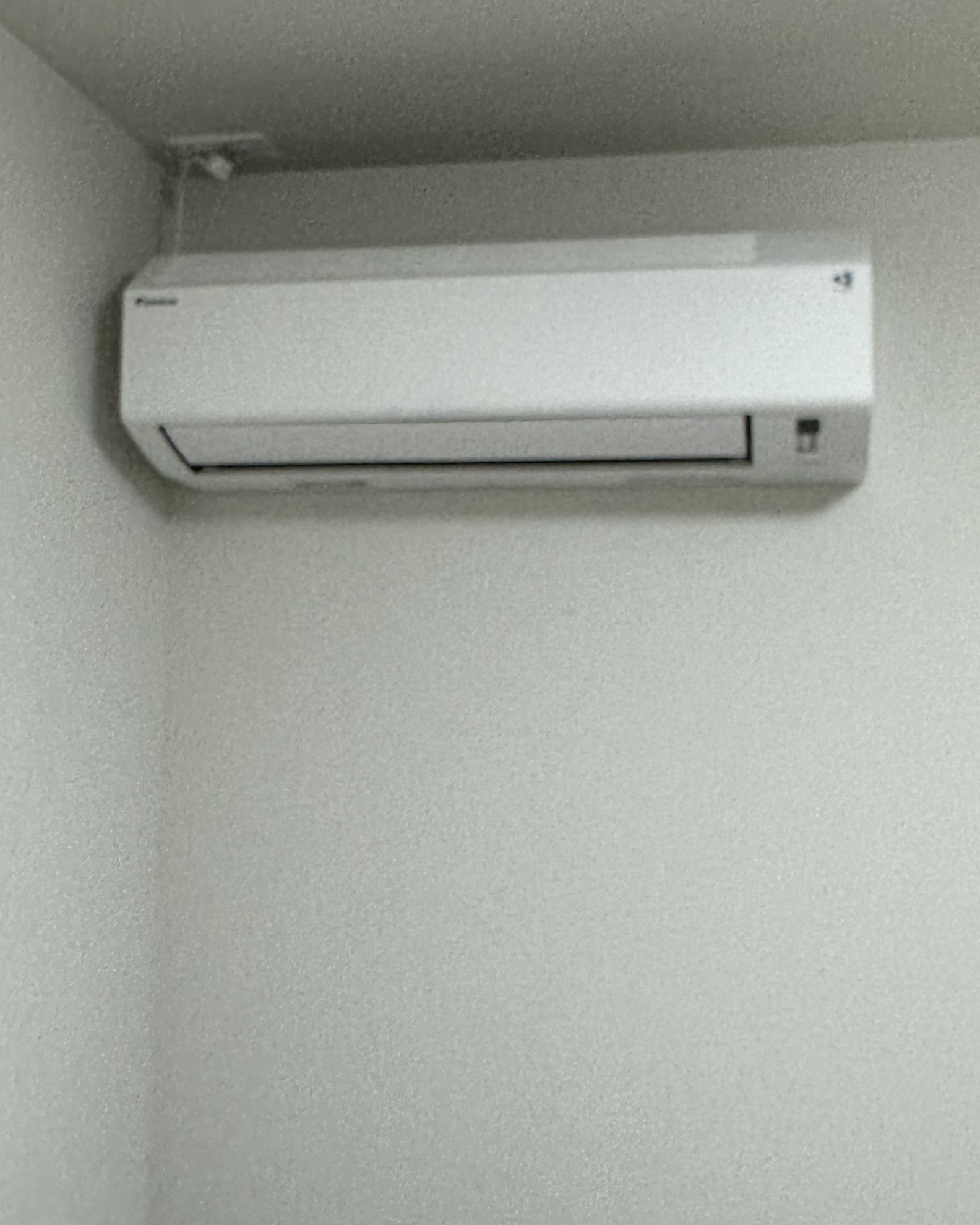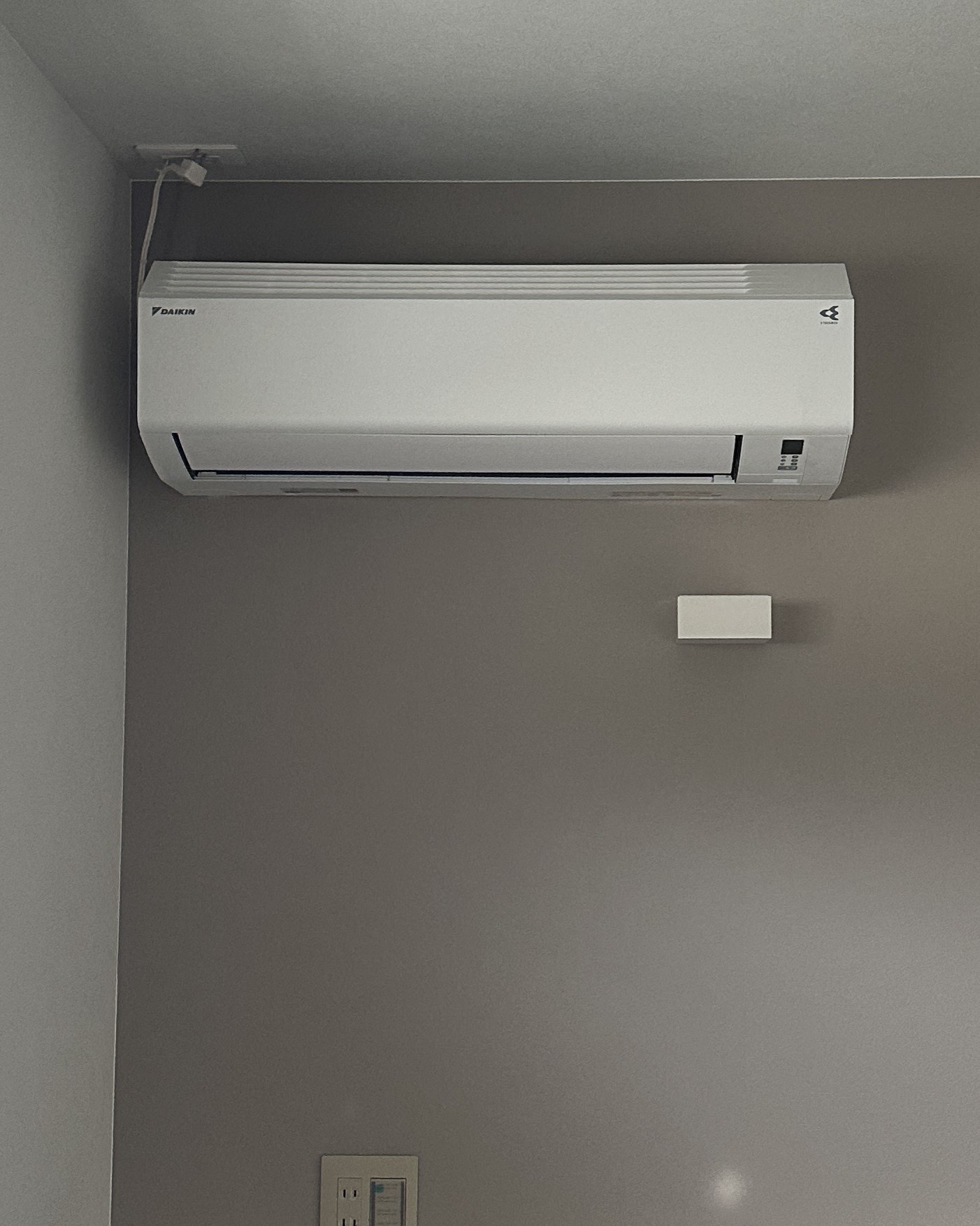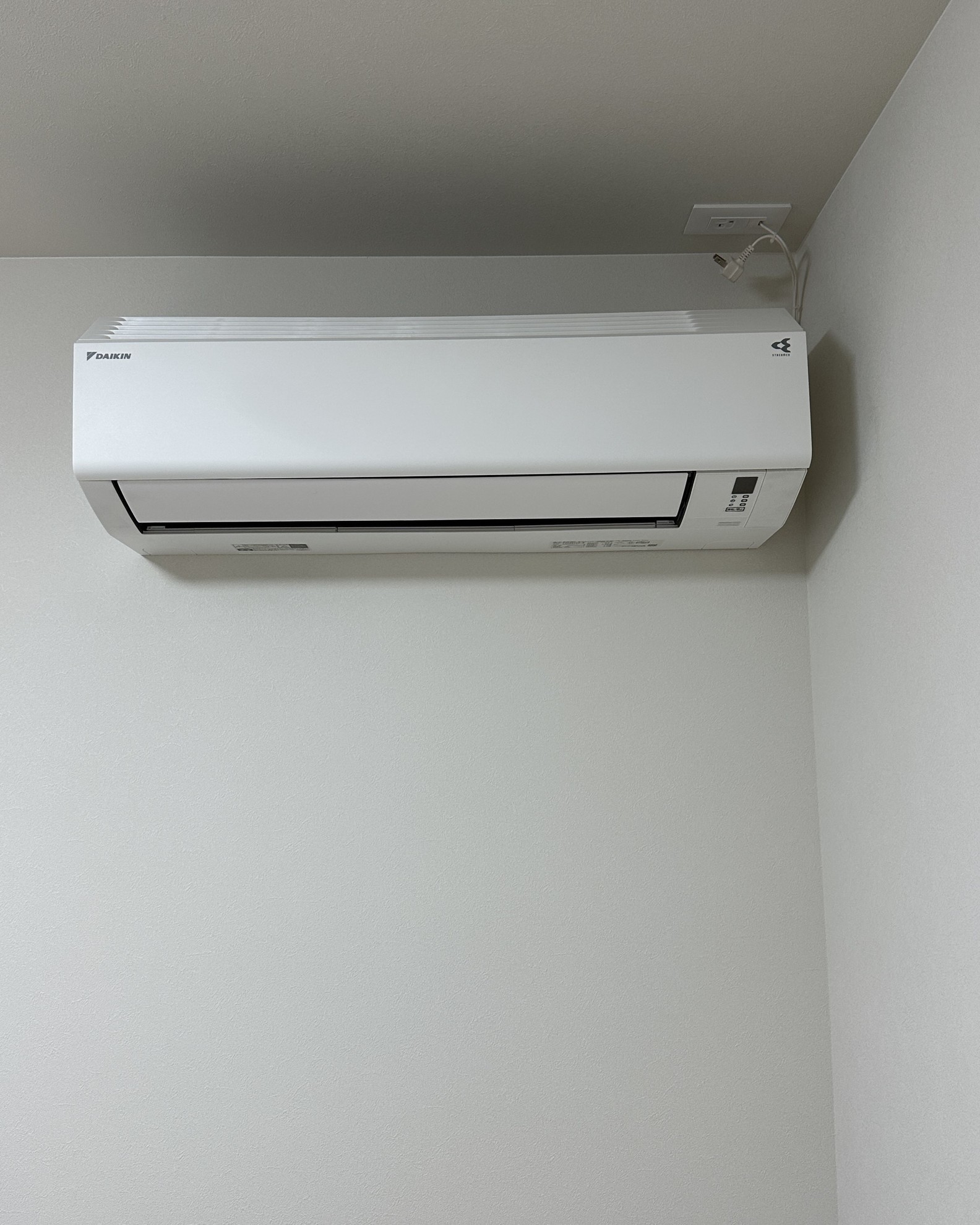 - この部屋のエアコンの穴は室内機の左後ろ。