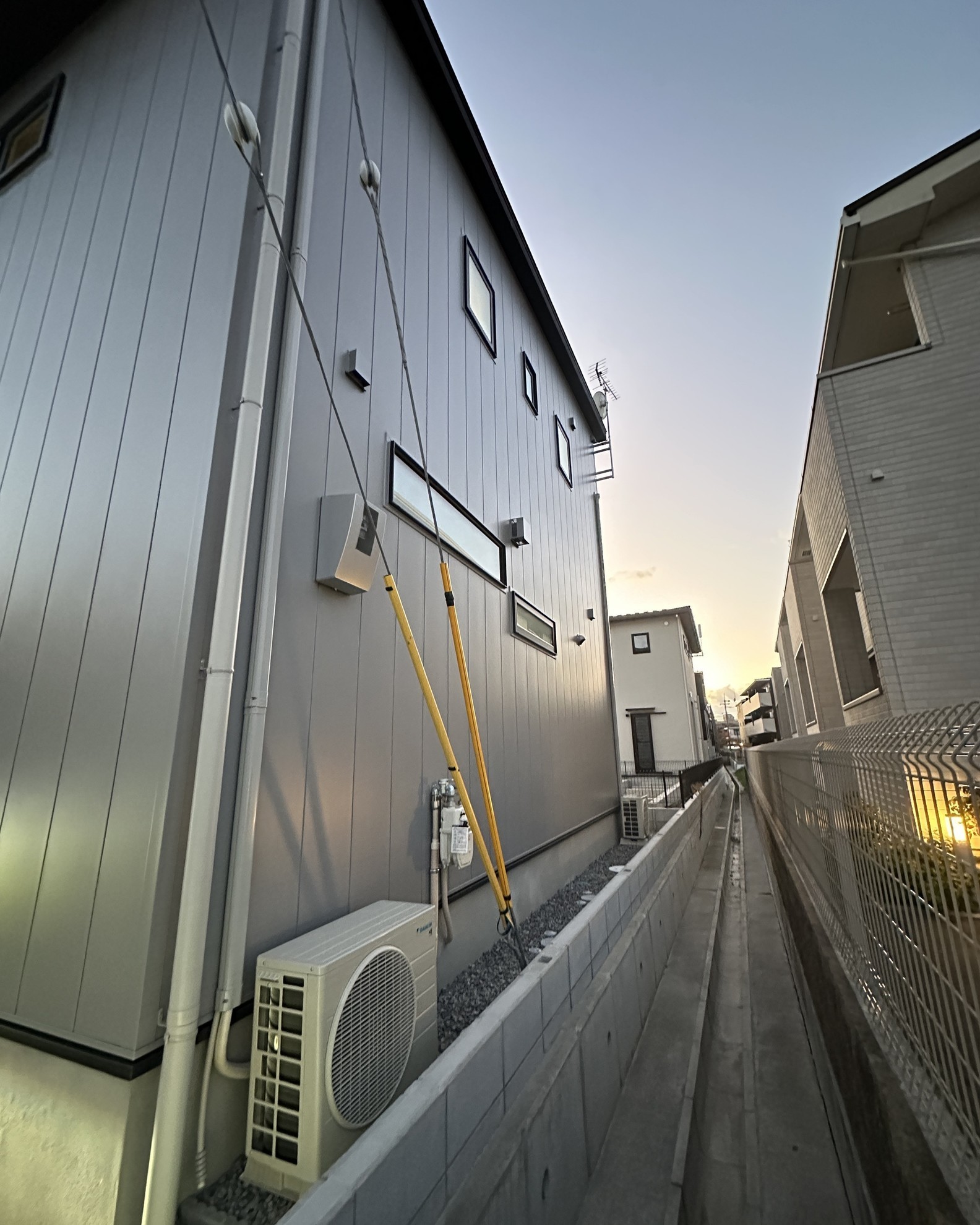 - その影響で最近の御新築は狭い土地の中で目一杯家を建てます。結果的に、通路が狭い、高所作業は困難の中で2階、3階建てのマイホームを建ちます。