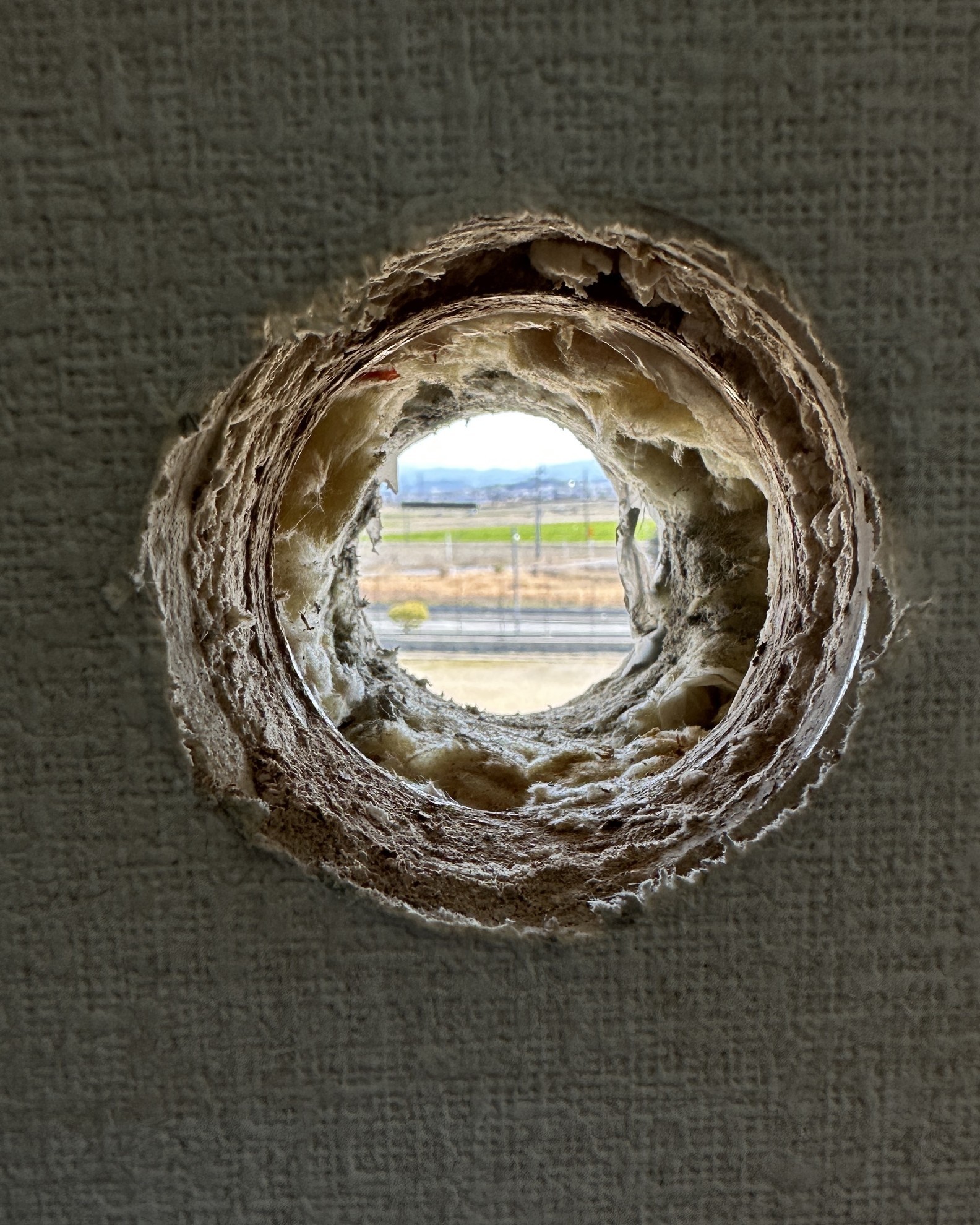 - エアコンの穴開け後ちゃんと貫通スリーブ投入。