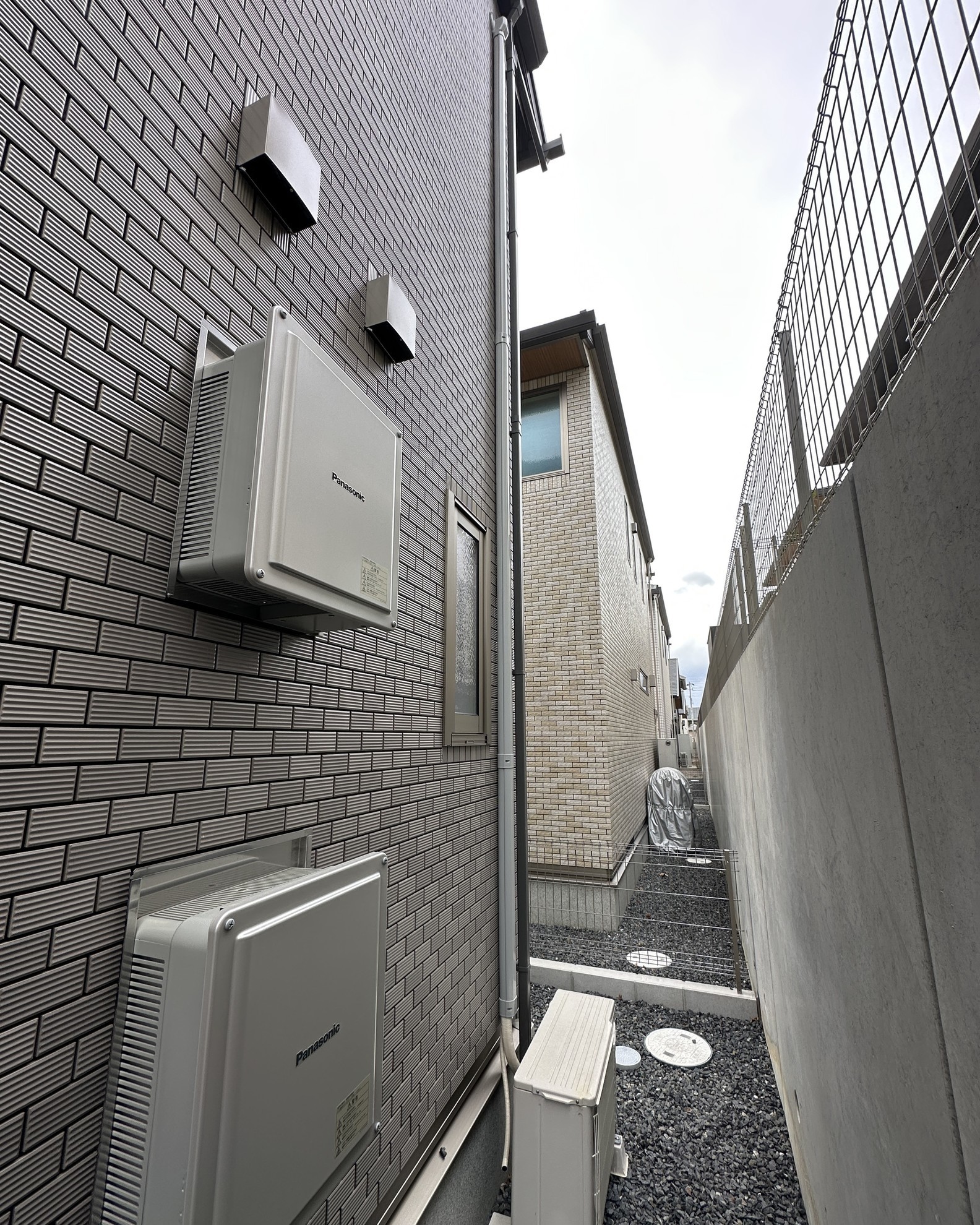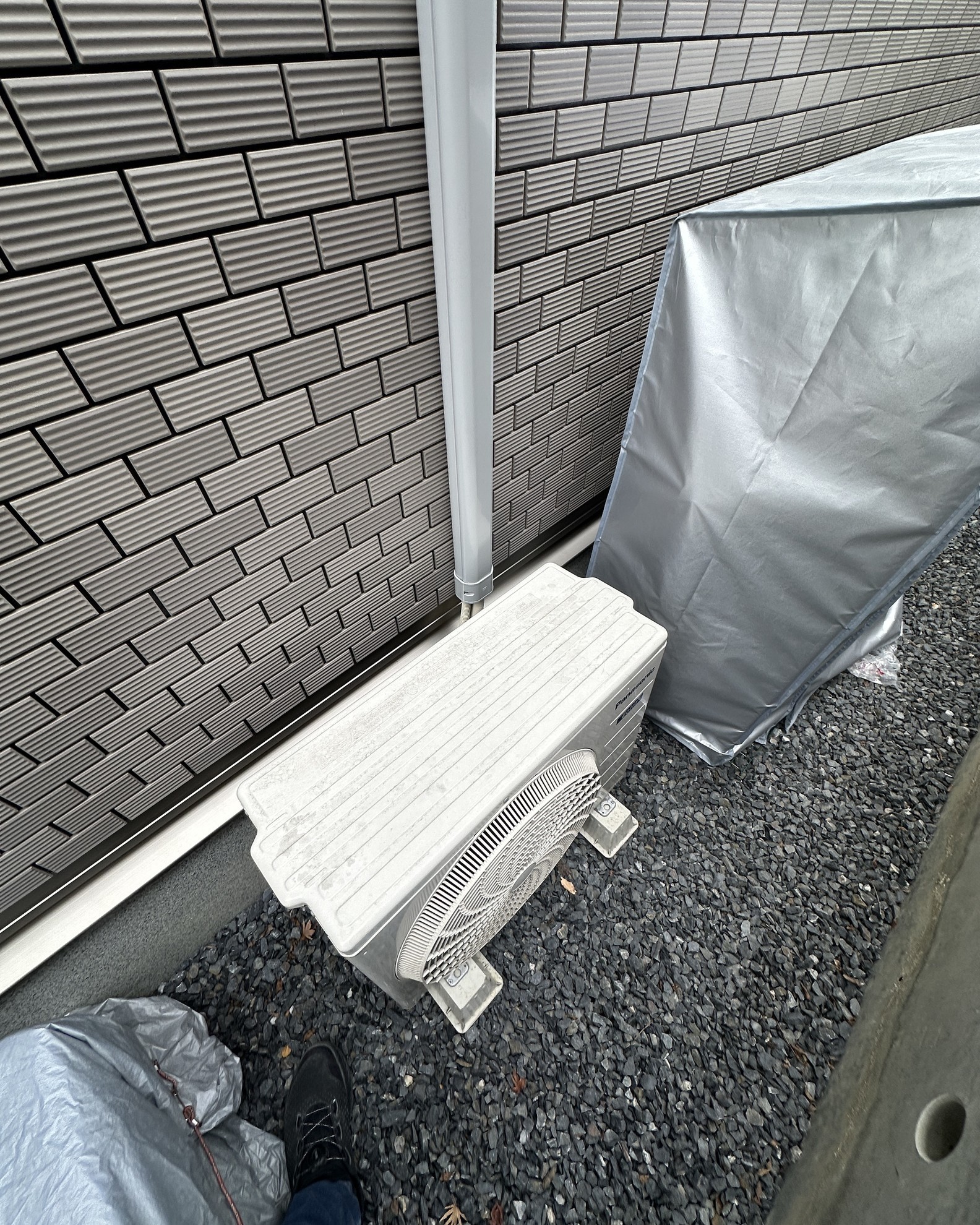 - 表側の外壁タイルで、その為他社は屋外化粧カバーの取り付け出来ないって断ったらしい。