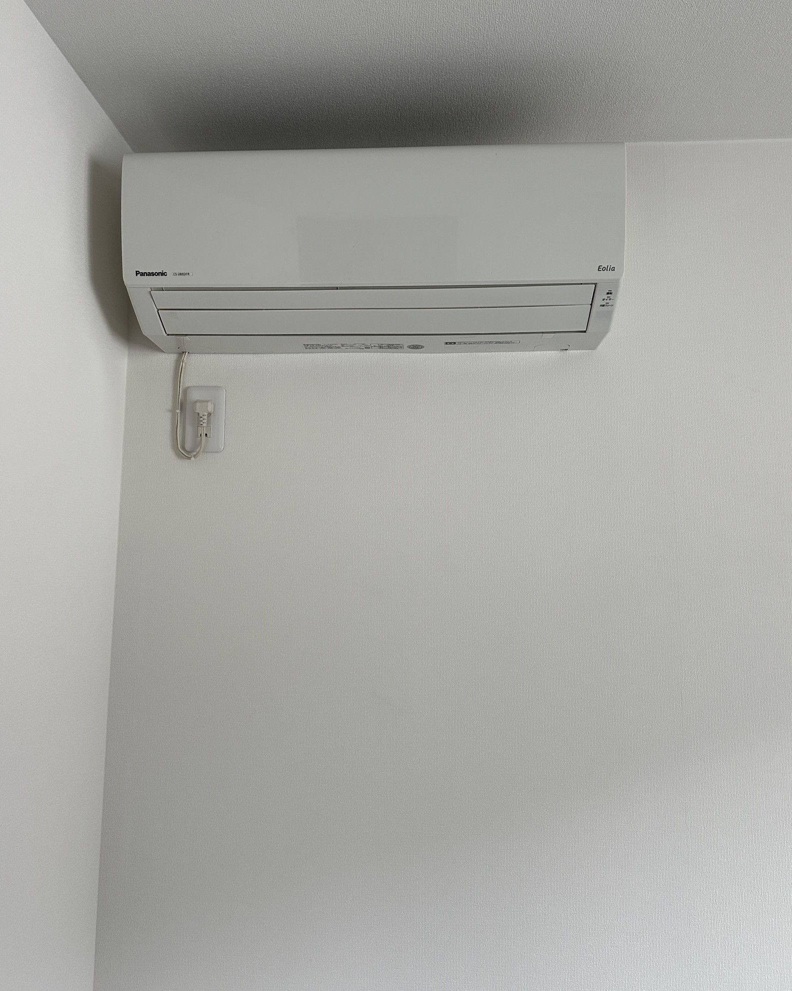 - この部屋にはマンションから外したパナソニックエオリアの2.8kw、2020年製のエアコンを取り付け予定。