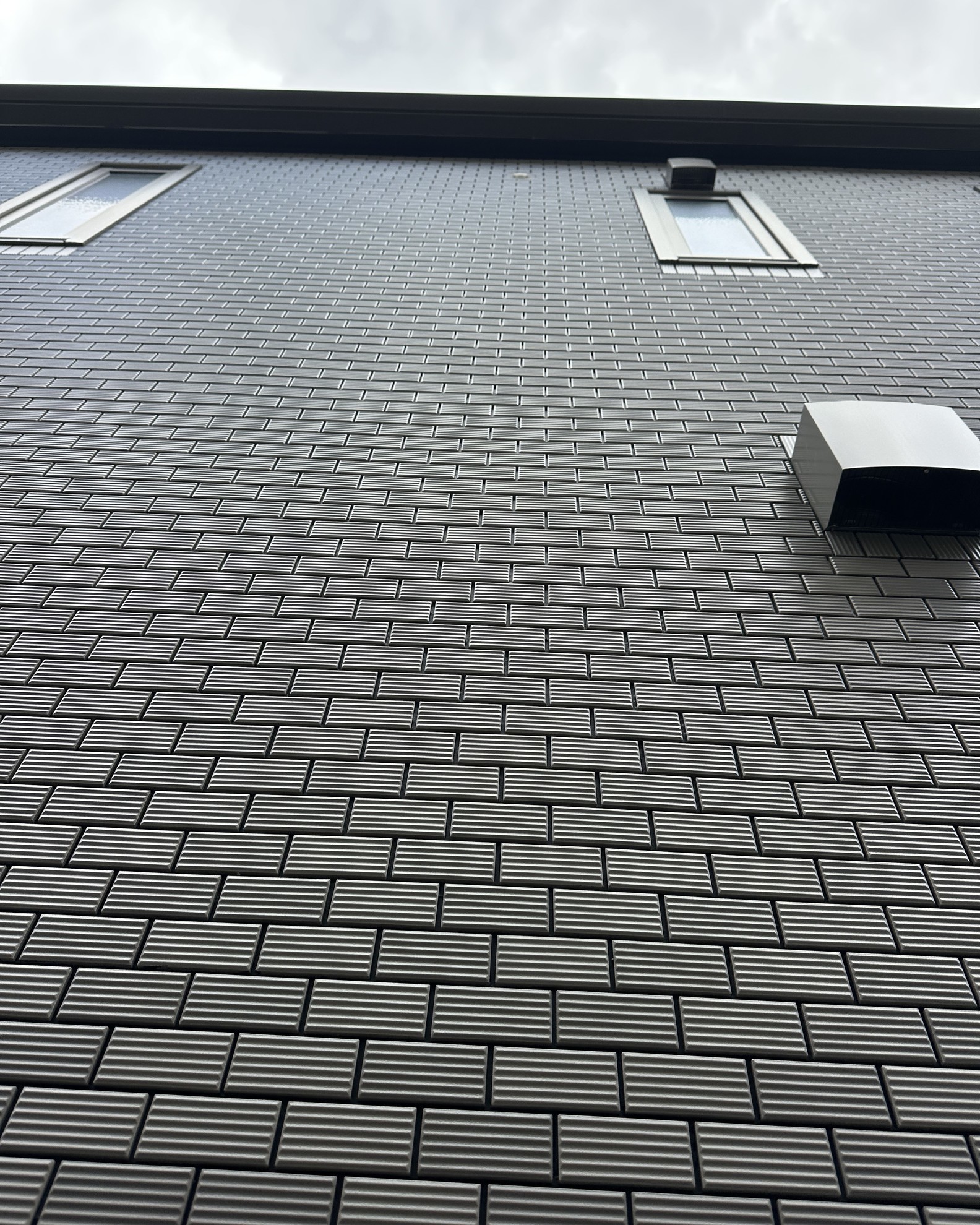 完成した2階2台の外壁タイルの屋外化粧カバーの取り付け