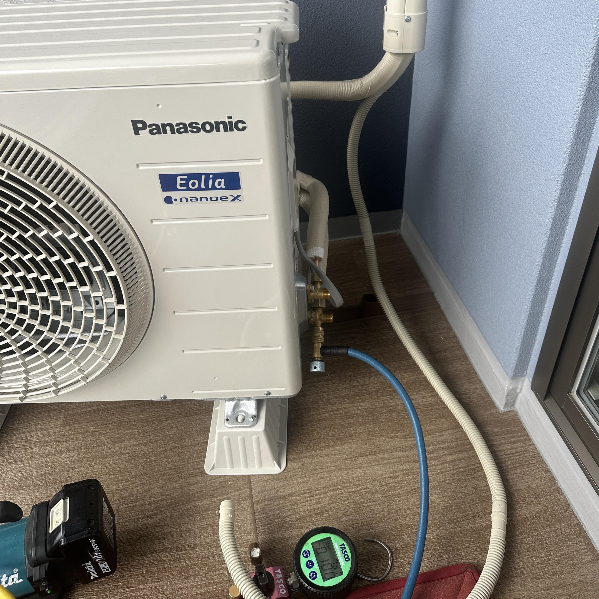 - I様に室外機の向きを確認してから、
