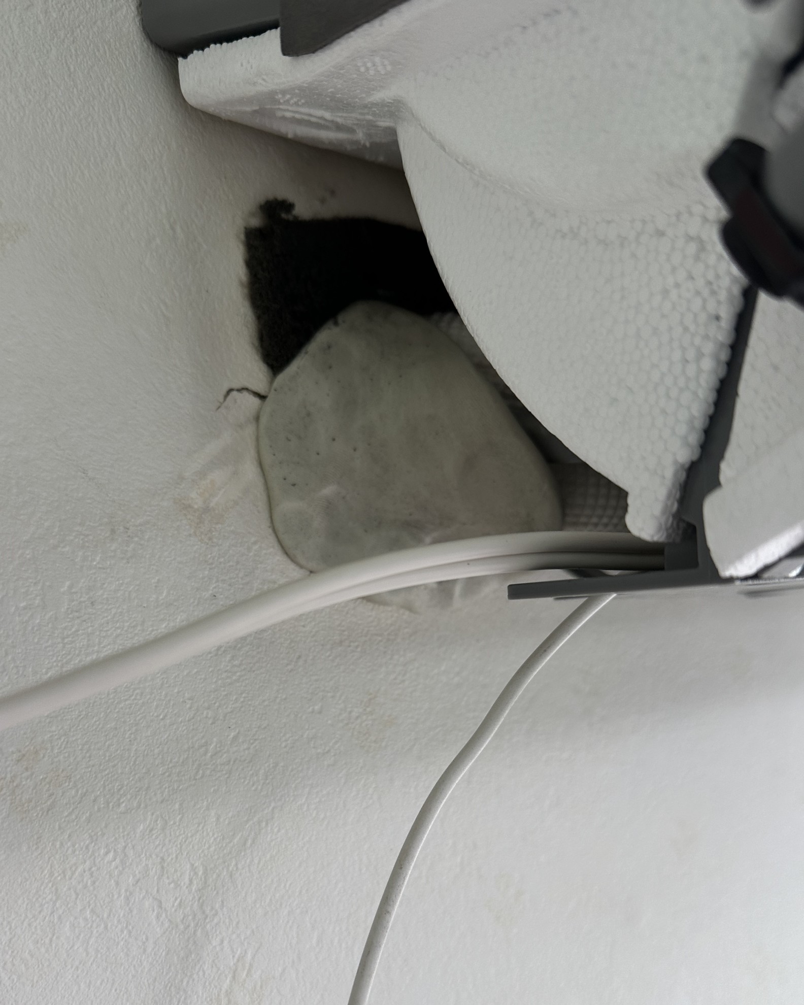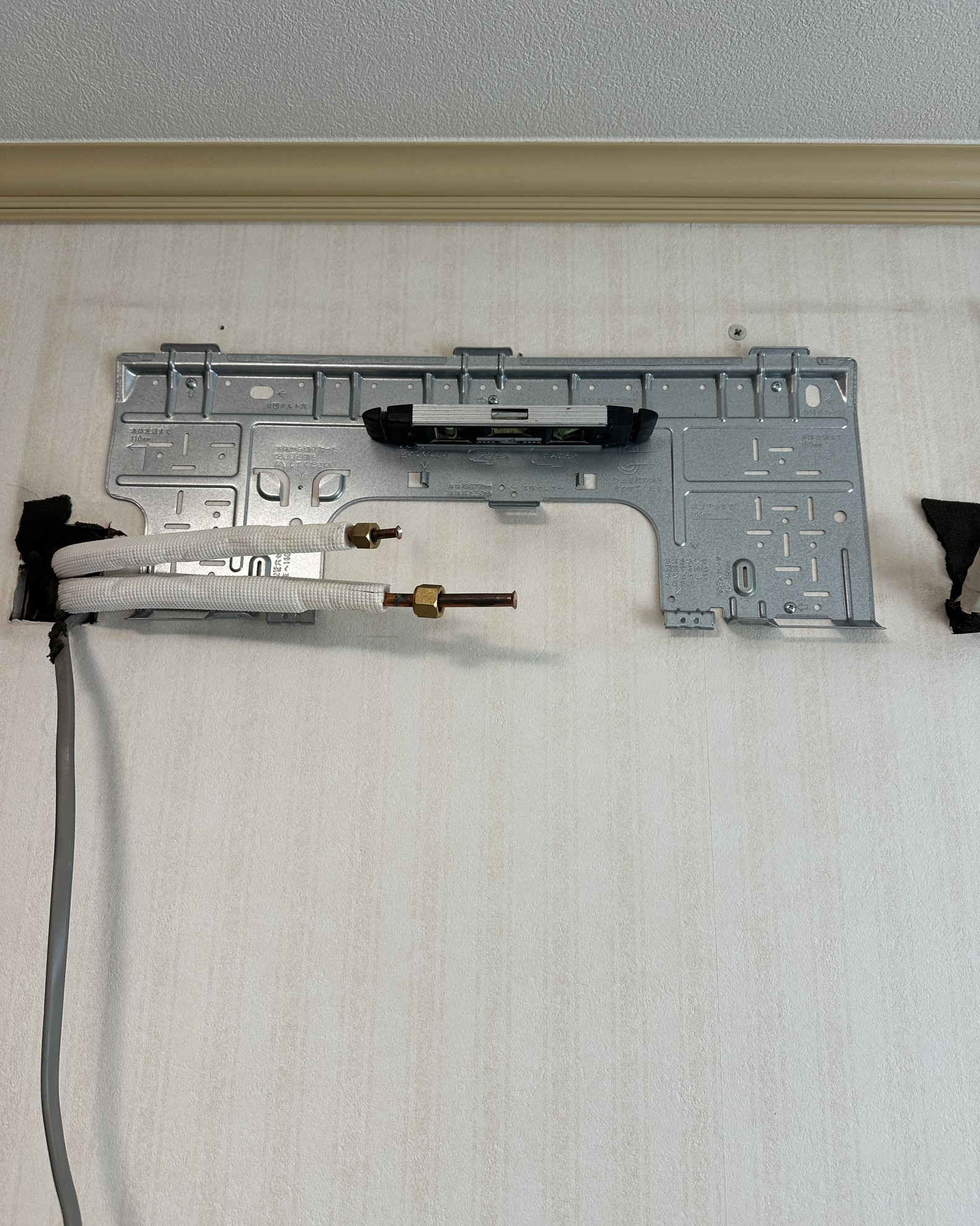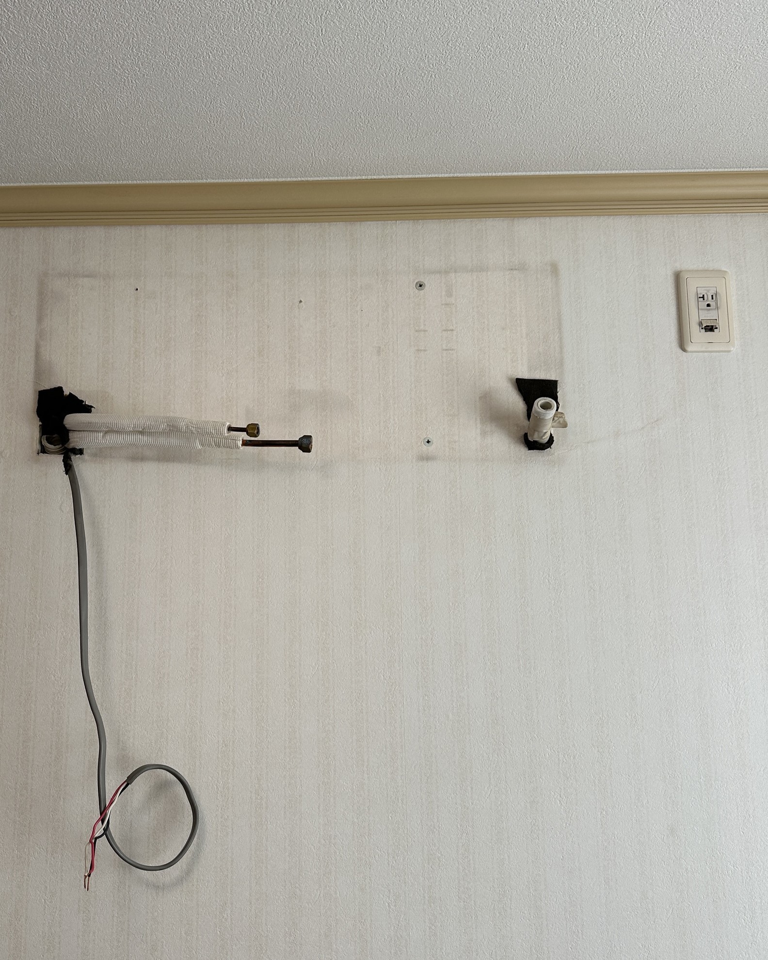 - 室内機収めた後に、隠ぺい配管の壁の隙間をパテで埋めました。