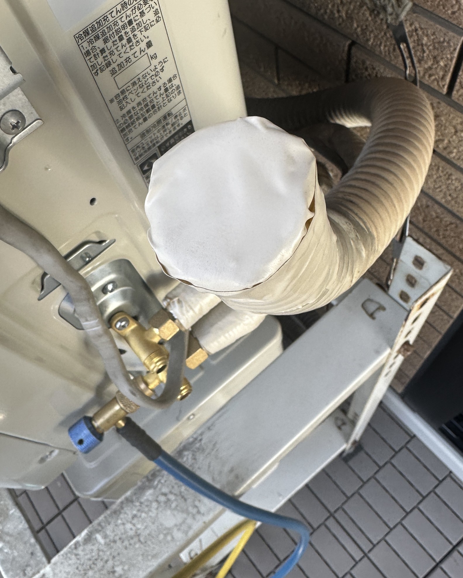 - 下の段の室外機の真空引き作業。