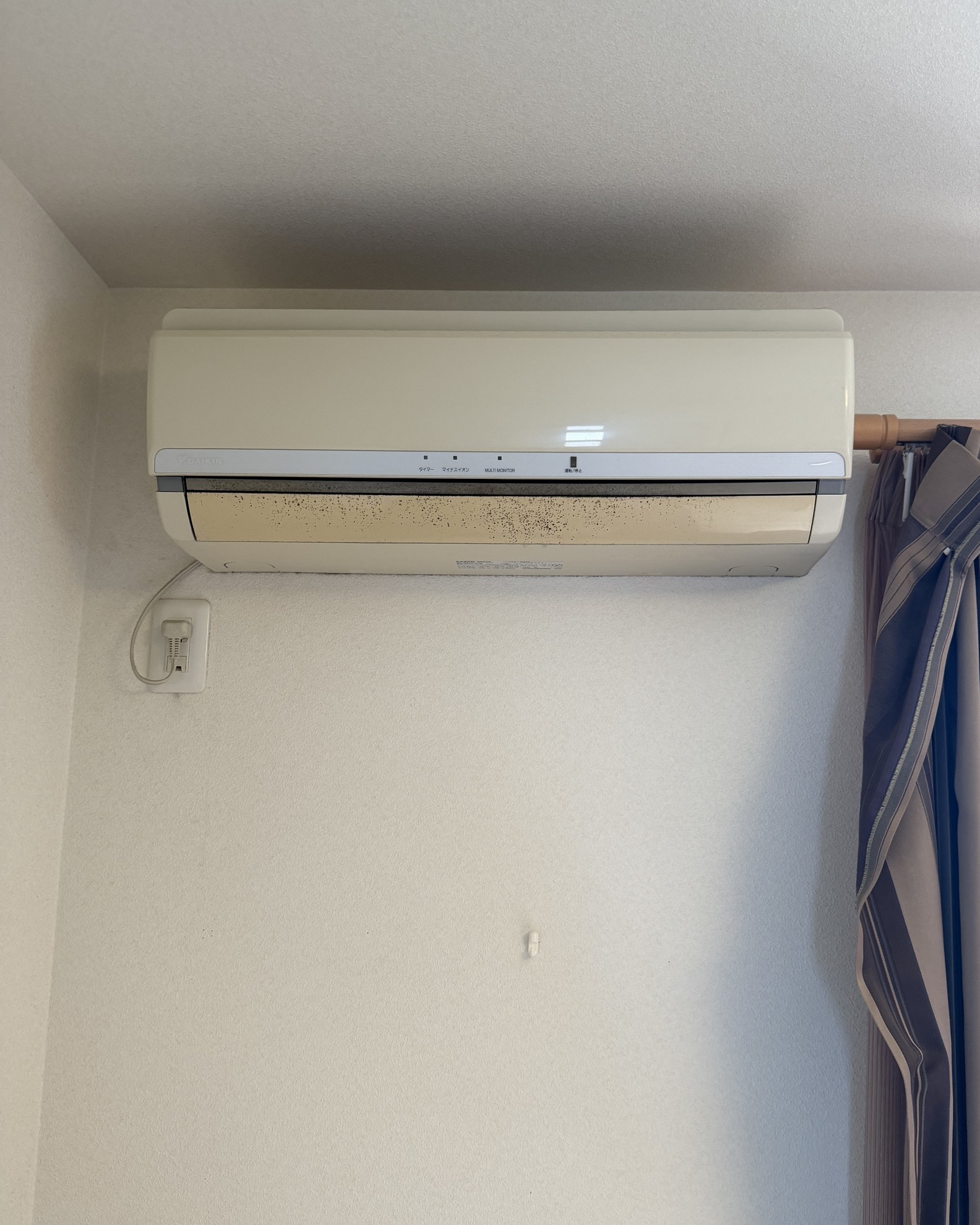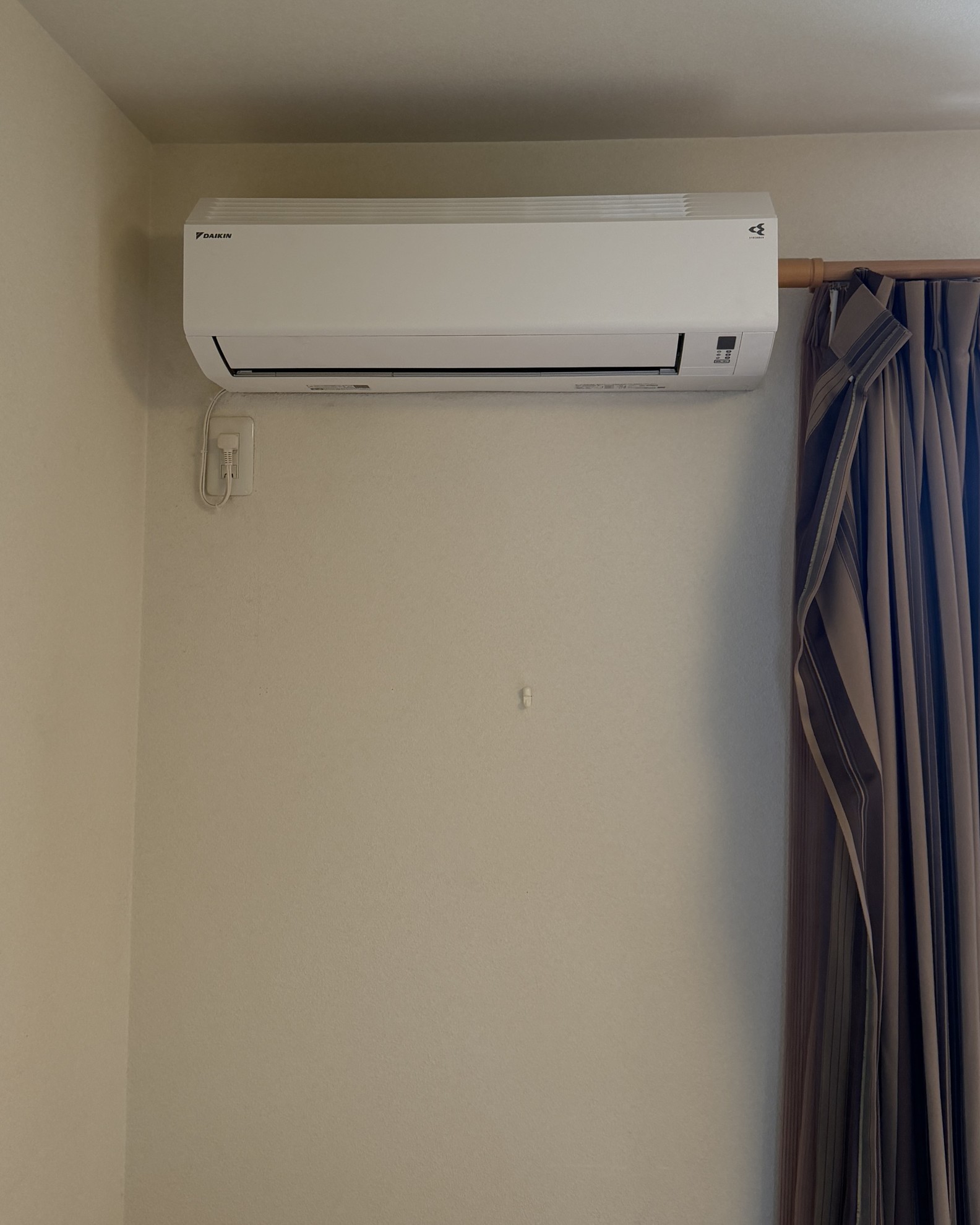 - この写真では洋室①の新しいダイキンのEシリーズの2.2kw、2025年モデル。