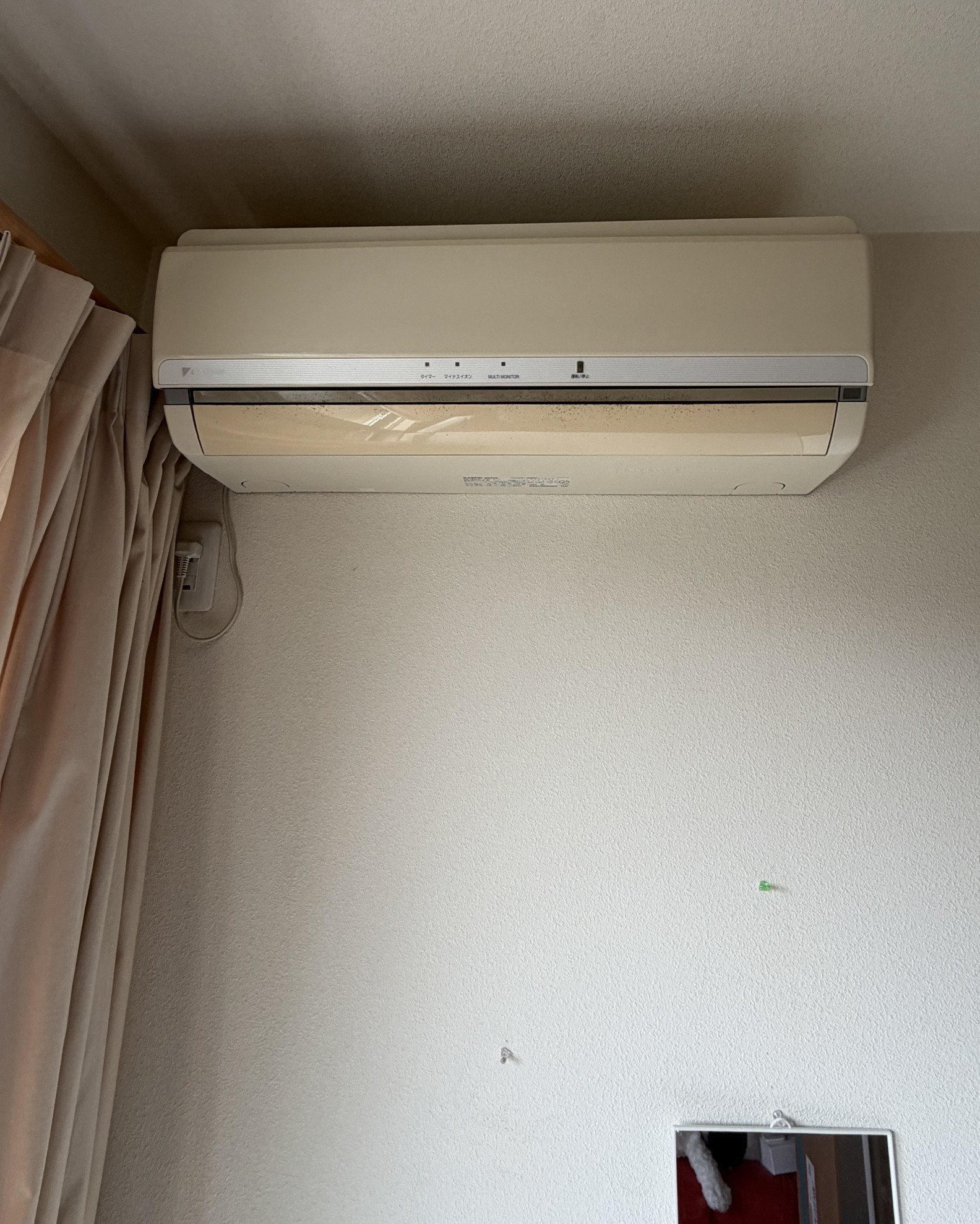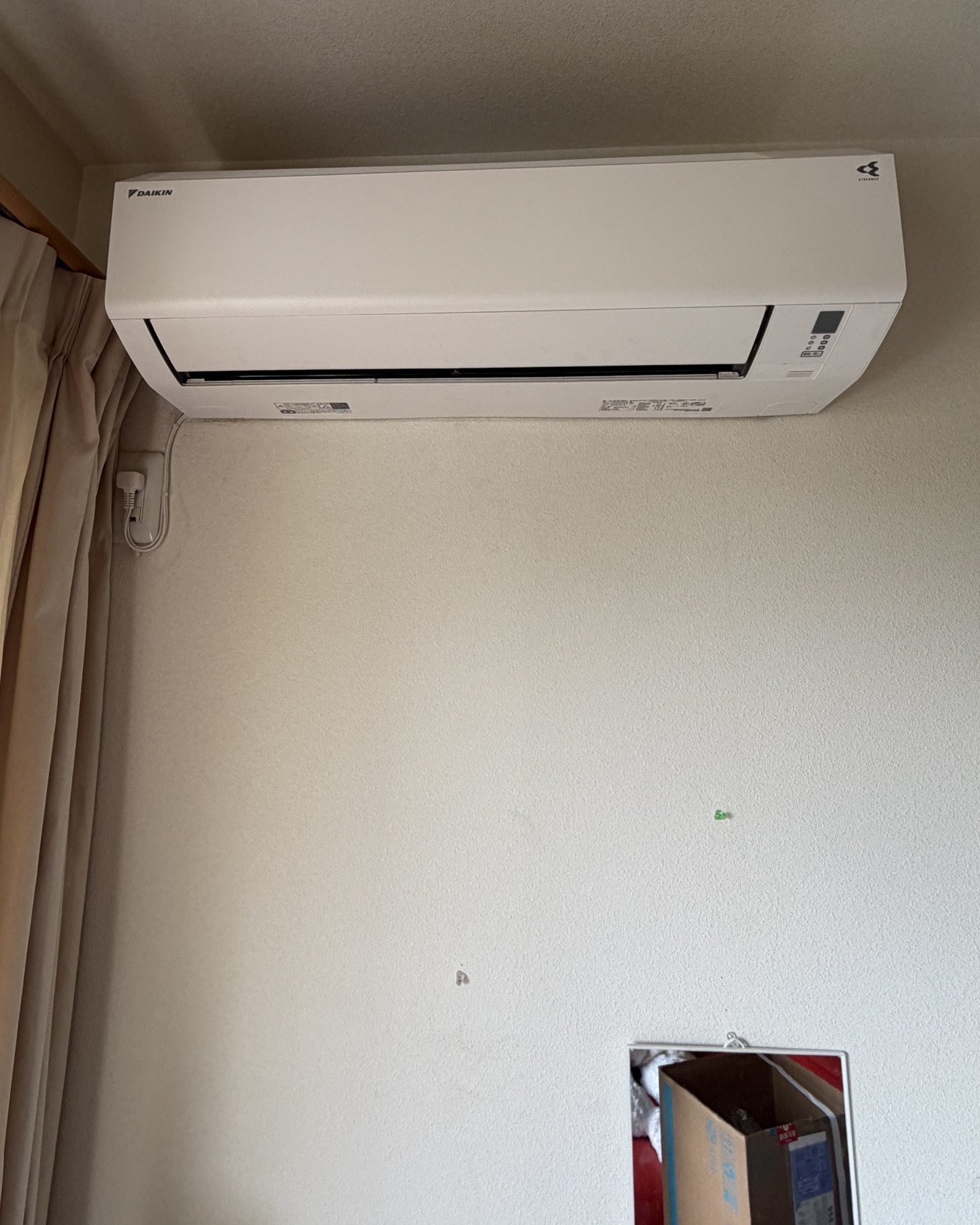 - 洋室①のエアコンは2.8kwでしたけど、間取りは6畳でしたから、ダイキンのEシリーズの2.2kっを取り付けます。