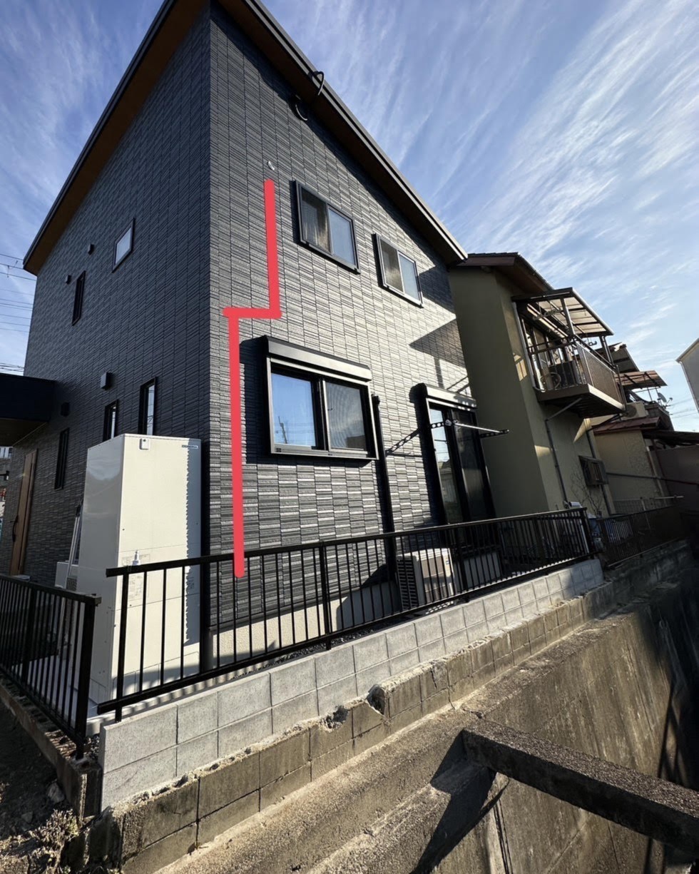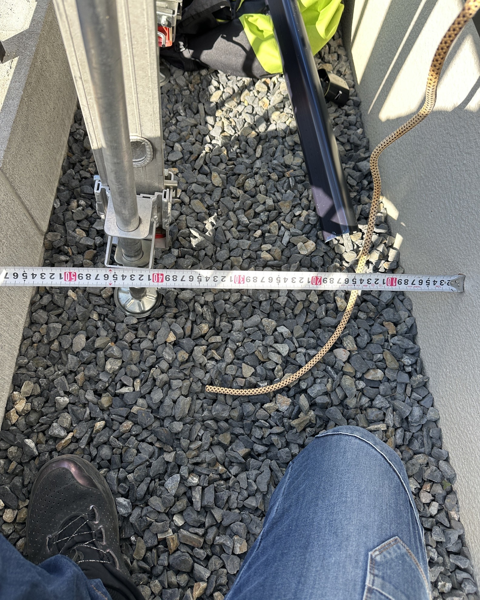- 梯子の真ん中を基準にして、外壁~ブロック塀まで50cmです。