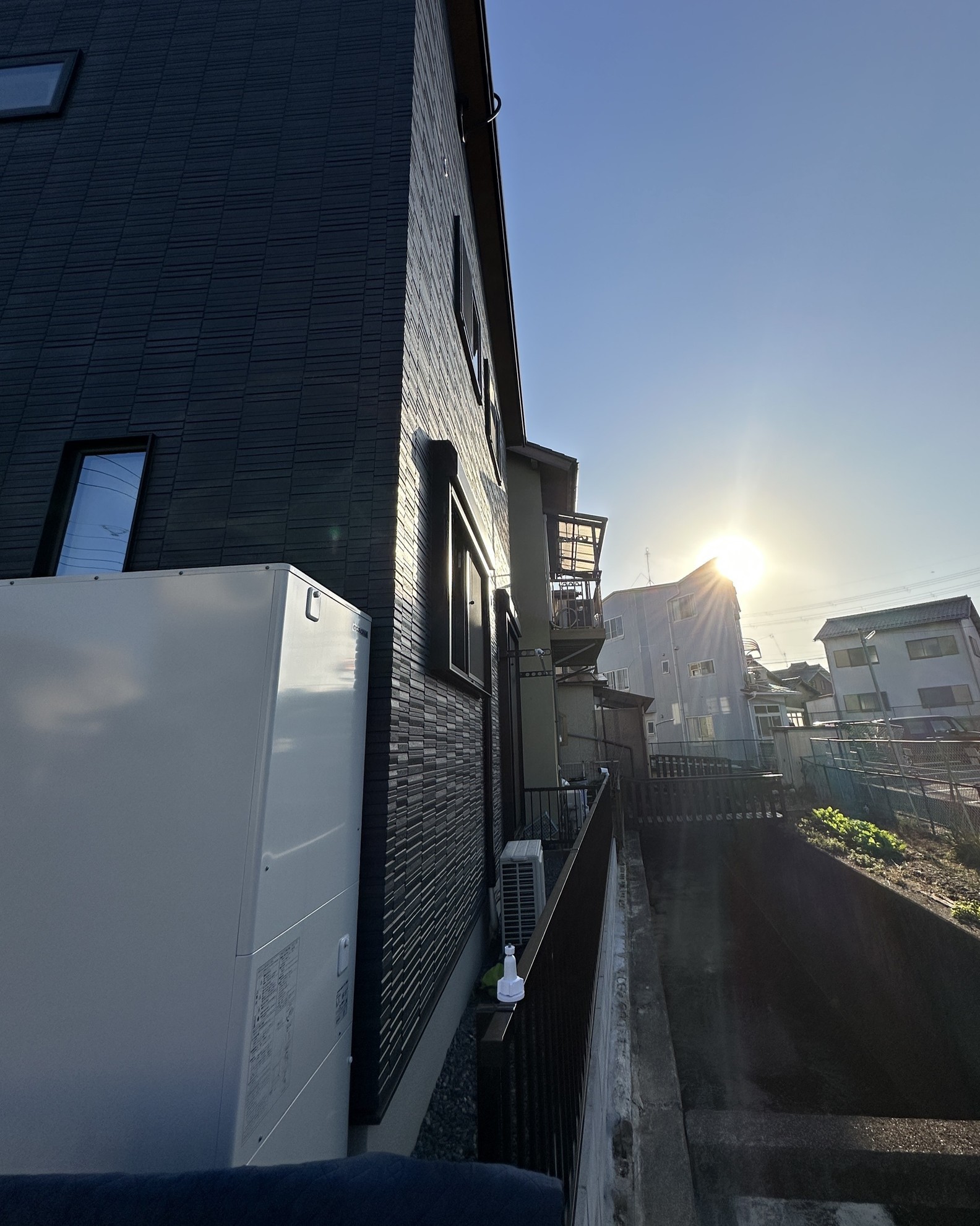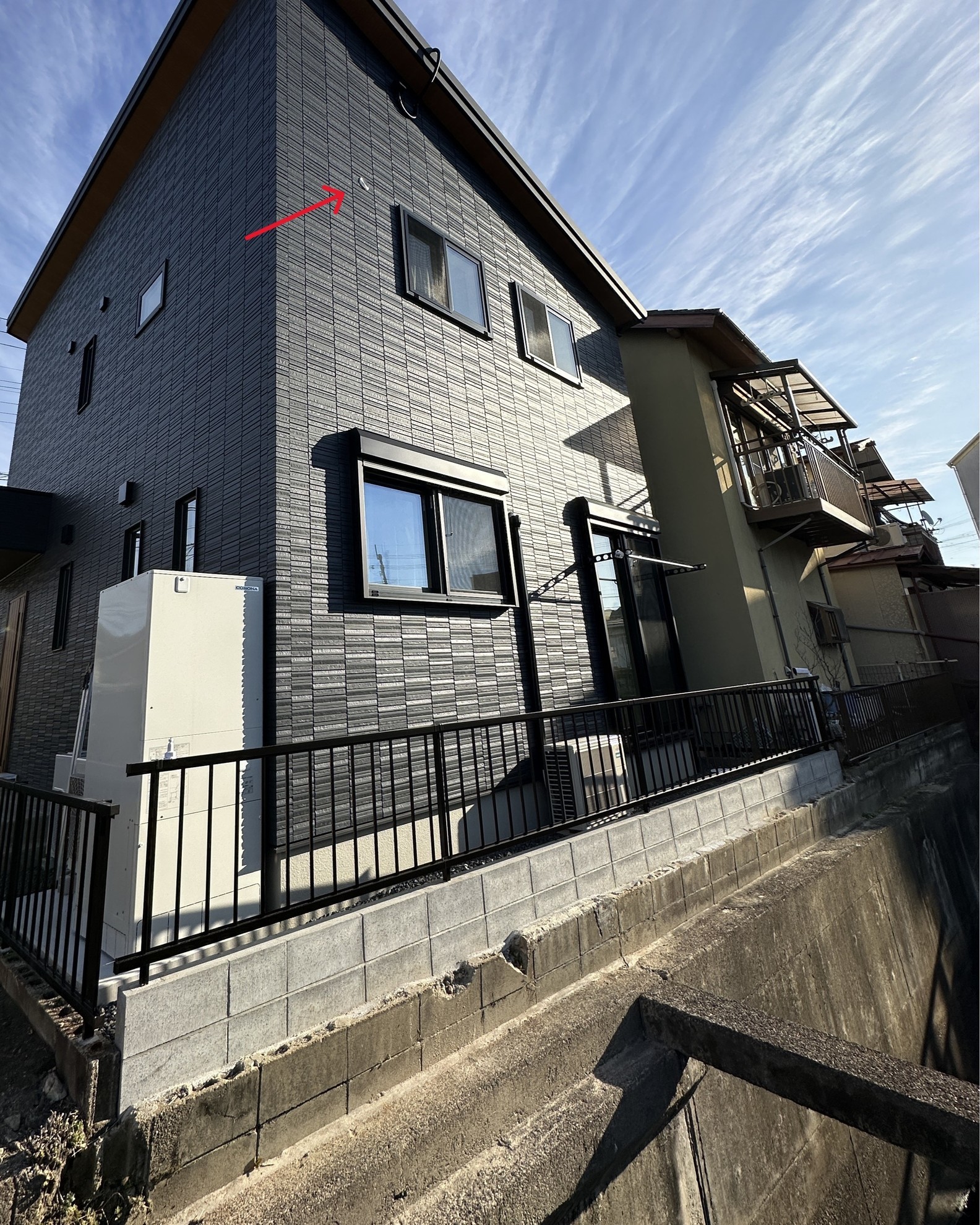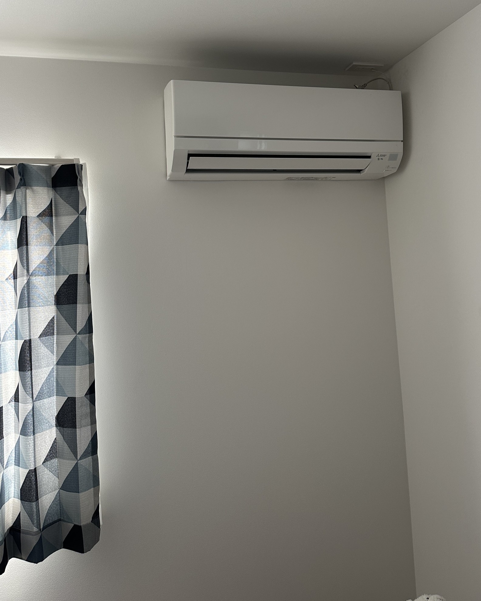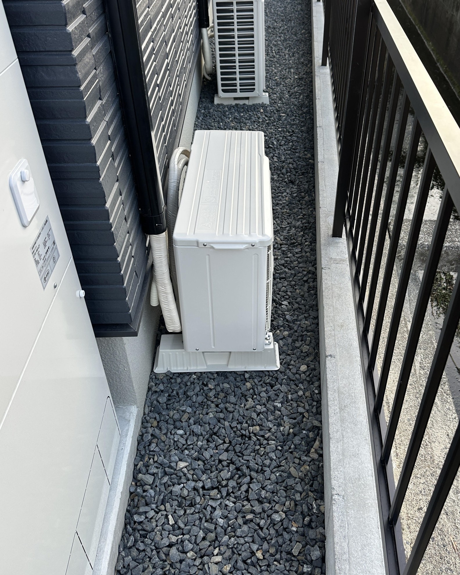 - 御新築の2階にエアコン3台取り付け、室外機は全て1階です。